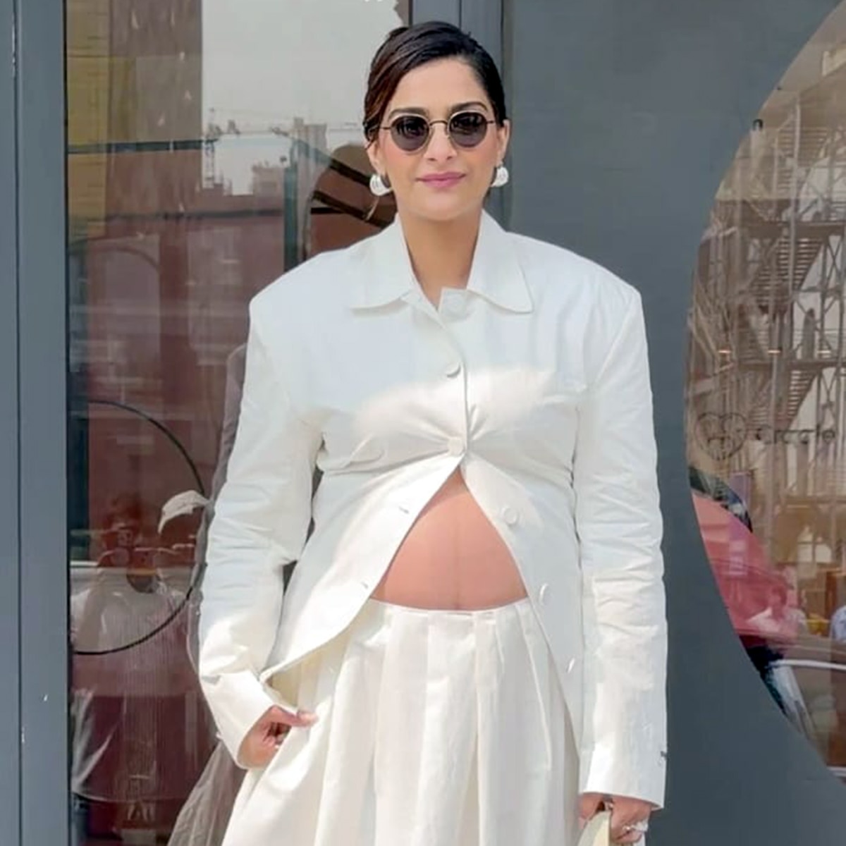 शर्ट को अनबटन करके सोनम कपूर ने फ्लॉन्ट किया बेबी बंप, प्रेग्नेंसी में दिखाई अदाएं, फैंस फिदा