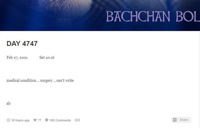 सदी के महानायक अमिताभ बच्चन सोशल मीडिया पर काफी सक्रिय रहते हैं. कभी ट्विटर तो कभी ब्लॉग के जरिए एक्टर अपने फैन्स से लगातार बातचीत भी करते हैं और कई मौकों पर अपनी जिंदगी के किस्से भी शेयर करते दिख जाते हैं. लेकिन इस बार एक्टर के नए ब्लॉग ने सभी को बड़ा झटका दिया है. ब्लॉग में अमिताभ बच्चन ने बताया है कि मेडिकल कंडीशन की वजह से उनकी एक सर्जरी होने वाली है.