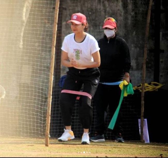 मंगलवार को अनुष्का को क्रिकेट के मैदान पर ट्रेनिंग ड्रिल्स और वार्म अप करते देखा गया. व्हाइट टी-शर्ट, ब्लैक ट्राउजर, स्पोर्ट्स शूज और सिर पर रेड कैप लगाए, अनुष्का एकदम स्पोर्टी लुक में नजर आईं. नेट के अंदर उन्हें क्रिकेट खिलाड़ियों की तरह हाथ में बॉल लेकर प्रैक्टिस करते देखा गया. उनकी ये तस्वीरें साफ बता रही हैं एक्ट्रेस अपने दमदार कमबैक में वे कोई कोर कसर नहीं छोड़ना चाहती हैं.
