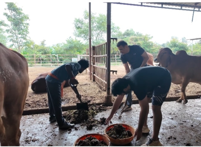 व्लॉग में अर्चना पुरन सिंह-परमीत सेठी अपने बेटे आर्यमन के साथ गौशाला पहुंचे. अर्चना वहां जाते ही कहा कि ये तो मैं सूंघकर पहचान सकती हूं. वो गाय के बच्चों को देख खूब खुश हुईं, उन्हें लाड प्यार करती नजर आईं. परमीत और आर्यमन ने गौसेवा की. उन्होंने गाय के गोबर को अपने हाथों से इकट्ठा कर सफाई की. परमीत ने बताया कि ये देखने में लगता आसान है लेकिन बहुत दम लगता है. अर्चना ने बताया कि यहां की गौशाला में हर जाति की गायों को अलग-अलग रखा जाता है, ताकि कोई मिक्स ना हो. इसके बाद कपल ने शुद्ध दूध और घी की मिठाई का मजा लिया.