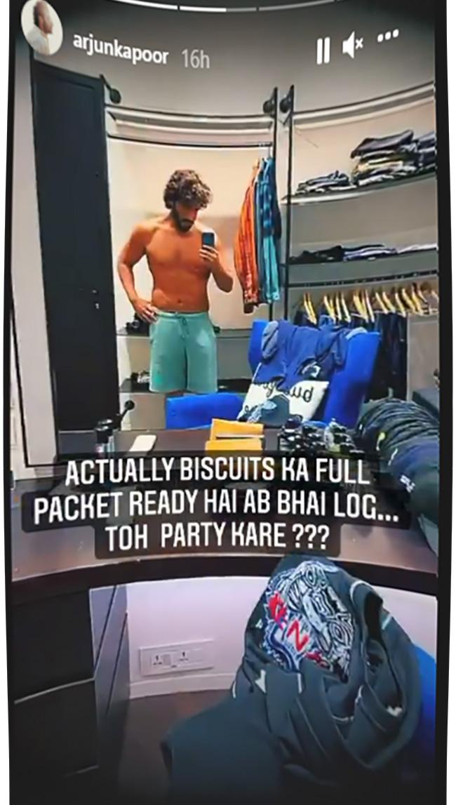 अर्जुन दूसरे बुमेरांग वीडियो में अपनी शानदार बॉडी फ्लॉन्ट करते हुए नजर आ रहे हैं. इस वीडियो में अर्जुन शर्टलेस होकर अपनी ट्रांसफॉर्मेशन बॉडी की झलक फैंस के साथ शेयर करते हुए दिखाई दे रहे हैं. इसके साथ अर्जुन ने कैप्शन लिखा- "बिस्किट का फुल पैकेट तैयार है अब भाई लोग...तो पार्टी करें?"