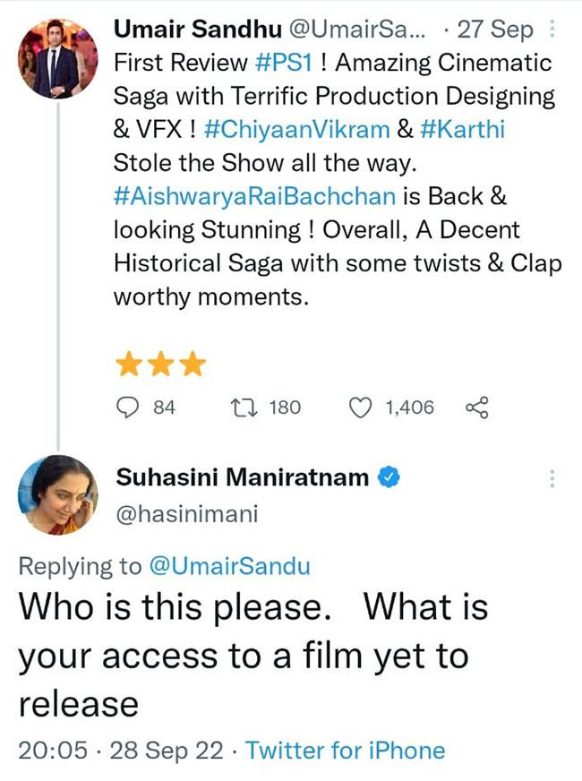 पिछले साल इसी अकाउंट से मणिरत्नम की फिल्म 'पोन्नियिन सेल्वन- 1' (PS-1) का रिव्यू, रिलीज से बहुत पहले शेयर हुआ. डायरेक्टर की पत्नी सुहासिनी मणिरत्नम ने ट्विटर पर ही पूछ लिया, 'प्लीज बताएंगे आप कौन हैं? जो फिल्म अभी रिलीज भी नहीं हुई, उसका एक्सेस आपको कैसे मिला?' लेकिन जवाब का इंतजार जनता आजतक कर ही रही है. इसी अकाउंट ने 5 फरवरी को ट्वीट किया था कि 'प्रभास और कृति सेनन अगले हफ्ते सगाई कर रहे हैं.' इसी ने दावा किया था कि 'अजय देवगन का रकुल प्रीत सिंह से एक्स्ट्रा-मैरिटल अफेयर चल रहा है'.