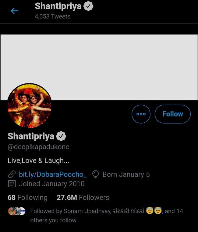 दीपिका पादुकोण ने सोमवार को अपनी डेब्यू फिल्म 'ओम शांति ओम' के 13 साल पूरे होने का जश्न मनाया है और अपने इंस्टाग्राम और ट्विटर के नामों को बदलकर 'शांतिप्रिया' कर दिया है, जो फिल्म में उनके किरदार का नाम था.