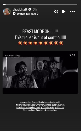 वहीं आलिया ने अपनी इंस्टा स्टोरी पर ट्रेलर शेयर करके उसपर 'बीस्ट मोड ऑन...ये ट्रेलर कंट्रोल से बाहर जाता है' लिखा. करण जौहर भी रणवीर सिंह और आदित्य धर की तारीफ करते नहीं थके.