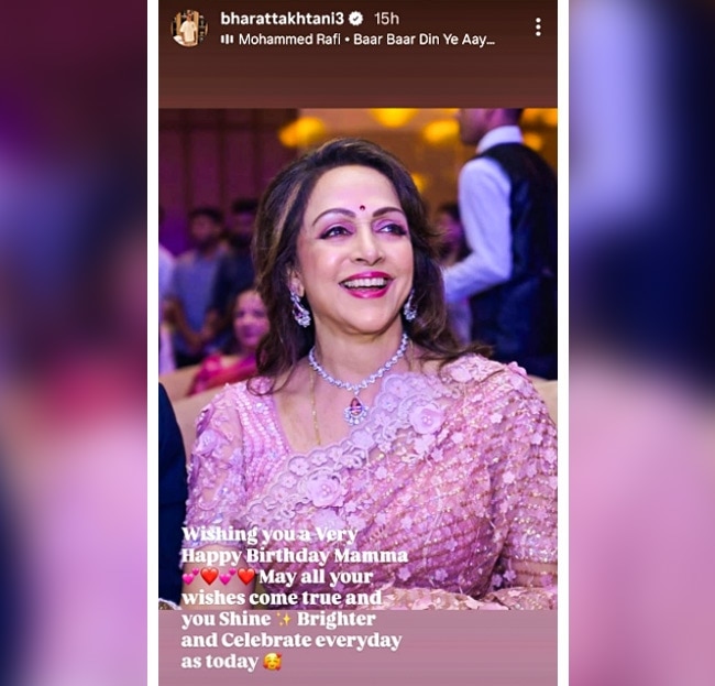 16 अक्टूबर को हेमा मालिनी ने अपना 77वां जन्मदिन सेलिब्रेट किया. हेमा मालिनी के जन्मदिन पर भरत ने उन्हें विश करते हुए इंस्टाग्राम पर प्यारी सी पोस्ट शेयर की. वो लिखते हैं कि आपको जन्मदिन बधाई मां. आपकी सभी मनोकामनाएं पूरी हों. आप यूंही शाइन करती रहें और हर दिन को आज की तरह धूमधाम से सेलिब्रेट करें.