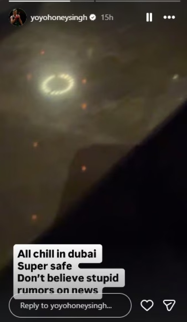 हनी सिंह ने इंस्टाग्राम पर दुबई में सुरक्षा को लेकर अफवाहों पर रिएक्शन दिया. अपनी इंस्टाग्राम स्टोरीज पर उन्होंने एक वीडियो शेयर किया, जिसमें रैपर एक रेस्टोरेंट में आराम करते हुए टेस्टी खाने का आनंद ले रहे हैं. उन्होंने वीडियो के साथ लिखा, ]दुबई में सब चिल है. सुपर सेफ. न्यूज में बेवकूफ अफवाहों पर विश्वास न करें.'