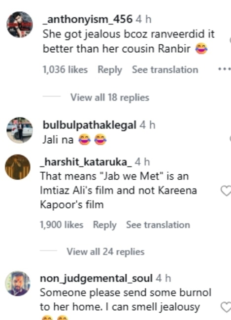 करीना का धुरंधर पर दिया बयान अब वायरल हो रहा है. यूजर्स इसे अलग तरह से भी देख रहे हैं. फैंस ने जहां करीना की बातों से सहमति जताते हुए कहा कि करीना ने सही बात कही है. फिल्म के पीछे एक डायरेक्टर का पूरा विजन और मेहनत होती है. वहीं कुछ यूजर्स ने करीना पर पक्षपाती होने का इल्जाम लगाते हुए कहा कि- इन्हें भी धुरंधर की सफलता रास नहीं आई है. वो रणवीर सिंह की मेहनत को पूरी तरह से दरकिनार कर रही हैं.