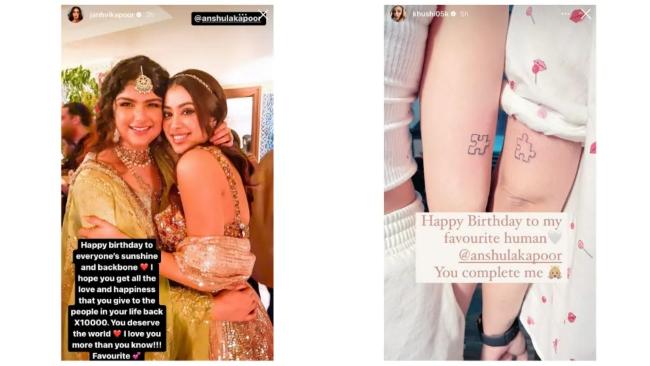 अंशुला कपूर भले ही फिल्मों में नजर ना आती हो, लेकिन अपने आलग अंदाज के लिए उन्हें जाना जरूर जाता है. बड़े पर्दे से अंशुला दूर हैं, लेकिन सोशल मीडिया पर वो काफी एक्टिव रहती हैं. अंशुला के जन्मदिन पर उनकी छोटी बहन खुशी कपूर ने एक प्यारी फोटो शेयर की थी. इस फोटो में दोनों के हाथ पर बने स्पेशल टैटू को देखा गया.