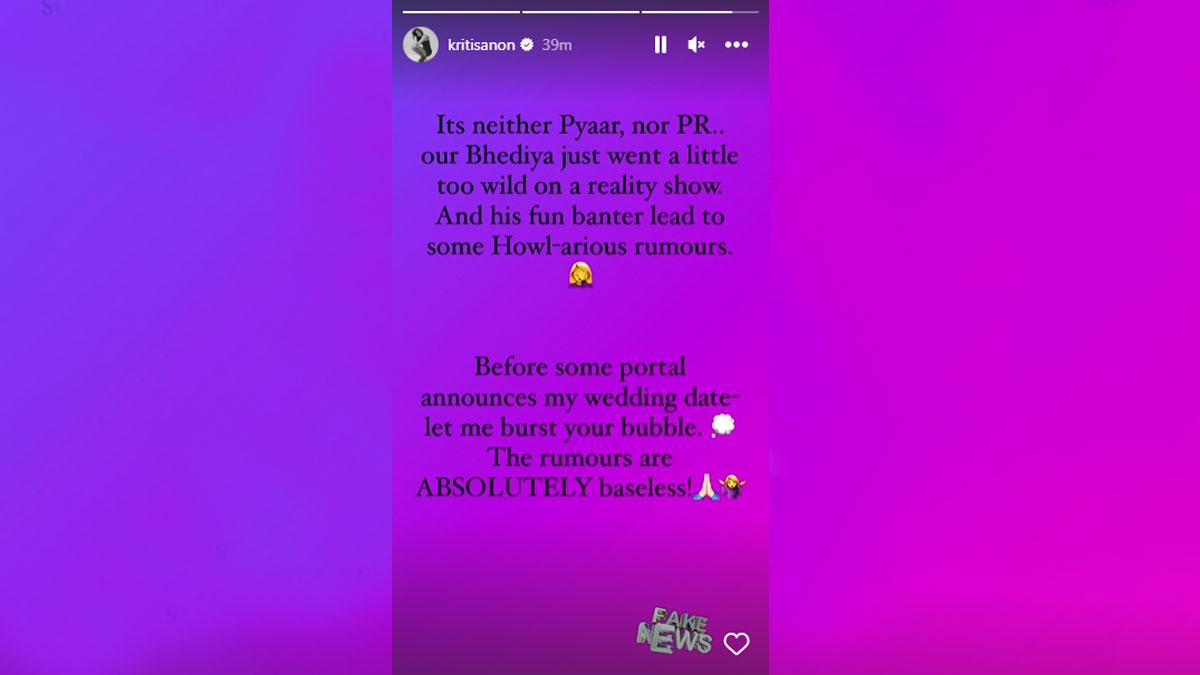 कृति ने आगे लिखा- इससे पहले कि कुछ पोर्टल मेरी वेडिंग डेट का ऐलान करें, तो मैं आपकी गलतफहमी दूर कर देती हूं. ये अफवाहें पूरी तरह से गलत हैं. इनमें कोई सच्चाई नहीं है.