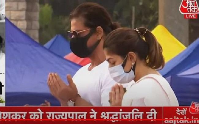 लता मंगेशकर का पार्थिव शरीर शिवाजी पार्क पहुंच चुका है. शाम साढ़े 6 बजे लता मंगेशकर को अंतिम संस्कार दी जाएगी. लता के अंतिम संस्कार के लिए उनकी बहन आशा भोसले समेत पूरा परिवार पहुंचा है. कुछ देर में प्रधानमंत्री नरेंद्र मोदी भी शिवाजी पार्क पहुंचने वाले हैं. शाहरुख खान, क्रिकेटर सचिन तेंदुलकर, गायिका अनुराधा पौडवाल, जावेद अख्तर समेत तमाम हस्तियां यहां मौजूद हैं. शाहरुख खान ब्लैक मास्क में और उनके बगल में सचिन तेंदुलकर सफेद मास्क पहने नजर आ रहे हैं.