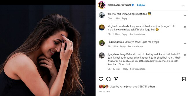 इससे पहले मलाइका अरोड़ा ने अपना एक शरमाते हुए फोटो शेयर किया था. इसे शेयर करते हुए उन्होंने लिखा था, 'मैंने हां कह दी है.' इस पोस्ट पर कई सेलेब्स ने उन्हें बधाइयां भी दी थी. मलाइका के फैंस खुशी से झूम उठे थे और उन्होंने सोच था कि एक्ट्रेस ने बॉयफ्रेंड अर्जुन कपूर के शादी के प्रपोजल को हां कह दिया है. ट्विटर पर अर्जुन कपूर ट्रेंड भी होने लगे थे. यूजर्स का मानना था कि सालों एक दूसरे को डेट करने के बाद कपल शादी के बंधन में बांधने जा रहा है.