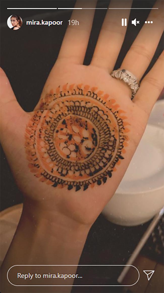 मीरा ने इंस्टाग्राम पर हाथों में लगी अपनी मेहंदी की तस्वीर साझा की है. उन्होंने सिम्पल डिजाइन चुनी है जिससे उनकी हथेली पूरी ढक गई है. करवा चौथ पर सभी सुहागिनें श्रृंगार करती हैं, ऐसे में मीरा का लुक भी देखने लायक होगा.