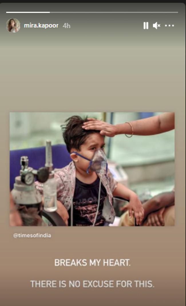 मीरा द्वारा शेयर की गई तस्वीर में एक मासूम बच्चा दिखाई दे रहा है, जिसने ऑक्सीजन मास्क पहना हुआ है. इस फोटो से साफ दिखाई देता है कि वह बच्चा कोरोनावायरस से जंग लड़ रहा है. पिक्चर को शेयर करते हुए एक्ट्रेस ने कैप्शन में लिखा, 'मेरा दिल टूट गया है. इसके लिए कोई बहाना नहीं है.'