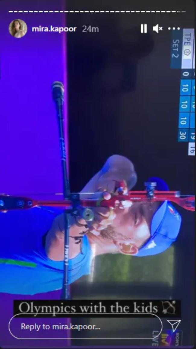 मीरा राजपूत बच्चों संग ओलिंपिक देख रही हैं. ऐसे में उन्होंने ओलिंपिक चलते हुए टीवी के फोटो पोस्ट किए हैं. मीरा ने कैप्शन में लिखा, 'बच्चों के साथ ओलिंपिक.' जाहिर है मीरा राजपूत अभी से ही बच्चों की खेल में दिलचस्पी बढ़ा रही हैं.