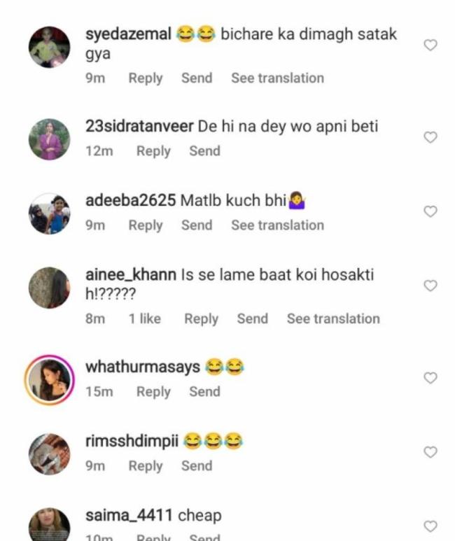 ट्रोल्स ने यासिर हुसैन का मजाक बनाना शुरू कर दिया. एक यूजर ने लिखा, 'बेचारे का दिमाग सटक गया है.' दूसरे ने लिखा, 'दे ही ना दे वो अपनी बेटी.' तीसरे ने लिखा, 'कुछ भी मतलब.' एक और ने कमेंट किया, 'इससे बेकार बात और कोई हो सकती है?'