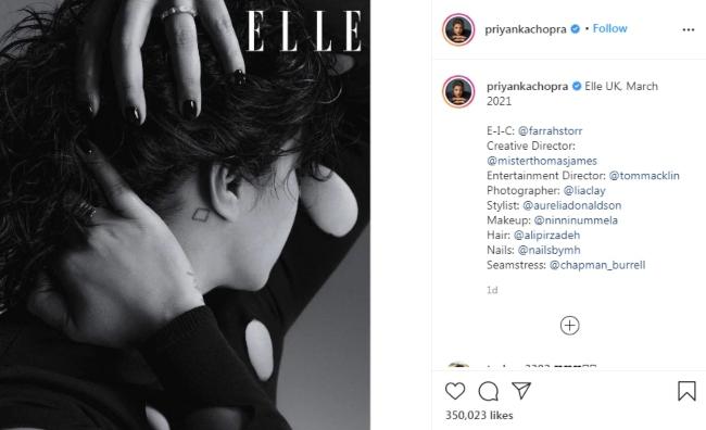 Elle मैगजीन के लिए करवाए अपने लेटेस्ट इंटरव्यू में प्रियंका चोपड़ा ने अपने और निक जोनस के मैचिंग टैटू के बारे में बात की. साथ ही टैटू की झलक भी दी. उन्होंने अपने टैटू के पीछे के कांसेप्ट का खुलासा करते हुए कहा, '' हमारी सगाई के एक साल पूरे होने पर हमने मैचिंग टैटू बनवाकर उस दिन को सेलिब्रेट किया था. मेरे टैटू, मेरे कानों के पीछे हैं और उनके टैटू, उनके दोनों बाजुओं पर हैं. हमने एक साइड पर चेक और दूसरे साइड पर बॉक्स बनवाया हुआ है.