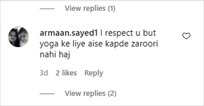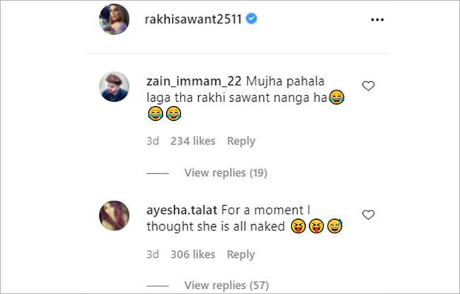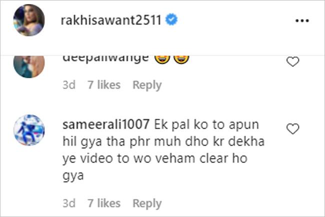 इस वर्कआउट सेशन के लिए राखी सावंत ने न्यूड कलर की स्पोर्ट्स ब्रा और ब्लू शॉर्ट्स पहने हैं. न्यूड कलर की स्पोर्ट्स ब्रा होने के चलते यूजर्स ने राखी को ट्रोल किया है. एक यूजर ने लिखा- मुझे पहले लगा राखी सावंत बिना कपड़ों के हैं. दूसरे यूजर ने लिखा- एक पल के लिए मुझे लगा वे नेकेड हैं. एक और यूजर ने लिखा- एक पल के लिए अपन हिल गया था पर मुंह धोकर देखा ये वीडियो तो वो वहम क्लियर हो गया. ऐसे ही कुछ अन्य यूजर्स ने राखी के कपड़े पर कमेंट किया है.