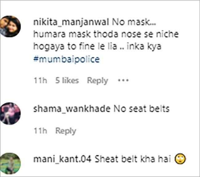 वीडियो में करीना और सैफ दोनों कार की फ्रंट सीट पर बैठे हैं. ना तो उन्होंने मास्क पहना है. ना ही सीट बेल्ट बांधी है. करीना कपूर और सैफ को ट्रोल करते हुए कई लोगों ने मुंबई पुलिस से कपल की शिकायत भी की है. एक ने लिखा- सेलेब्स को क्या सीट बेल्ट पहनने की जरूरत नहीं है? यूजर ने मुंबई पुलिस को टैग में लेते हुए लिखा- सीटबेल्ट वॉयलेशन.