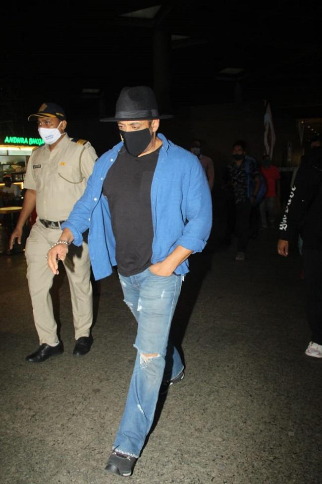 बॉलीवुड सुपरस्टार सलमान खान अपनी फिल्म टाइगर 3 की ऑस्ट्रिया में शूटिंग को खत्म कर मुंबई लौट आए हैं. रविवार को पैपराजी ने सलमान खान को मुंबई एयरपोर्ट से निकलते देखा. यहां सलमान डेनिम जींस और शर्ट के साथ ब्लैक टी-शर्ट और हैट में नजर आए. उन्होंने अपने चेहरे पर ब्लैक मास्क लगाया था और जेब में हाथ डालकर चल रहे थे.