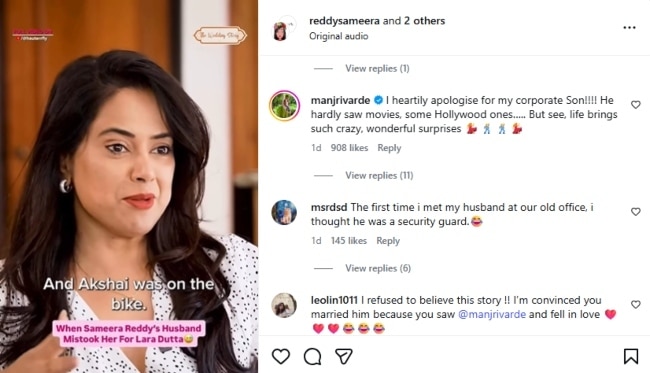 इंटरव्यू में समीरा रेड्डी और अक्षय वर्डे ने बताया कि उनकी पहली मुलाकात कैसे एक यादगार पल बन गई थी. समीरा ने याद किया कि 2012 की फिल्म 'तेज' के प्रमोशन्स के दौरान वो अक्षय से मिली थीं. एक्ट्रेस को बाइक पर एक सीन शूट करना था और अक्षय अपनी मोटरसाइकिल बिजनेस की वजह से इसमें शामिल थे. उन्होंने हंसते हुए कहा, 'तो हमारी मुलाकात का तरीका ही मजेदार है. मैंने अक्षय को शूट पर देखा और मैं अपनी फिल्म तेज के प्रमोशन्स के लिए बाइक चला रही थी. मेरे पीआर शूट करने के लिए एक बड़ी बाइक आई. अक्षय बाइक पर थे. उन्हें लगा था कि मैं लारा दत्ता हूं. इसलिए वो शूट पर आए थे.'