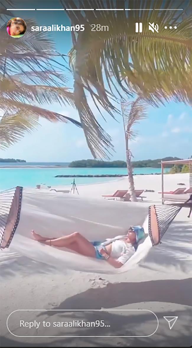 एक्ट्रेस सारा अली खान इन दिनों छुट्टियों के मूड में हैं. कुछ ही दिन पहले लद्दाख ट्रिप से लौटीं सारा अब मालदीव पहुंच गई हैं. उन्होंने मालदीव के खूबसूरत मौसम के बीच अपनी फोटो शेयर की है. इंस्टाग्राम स्टोरी पर भी सारा की डे-टाइम को एंजॉय करते कमाल की तस्वीरें साझा की है.