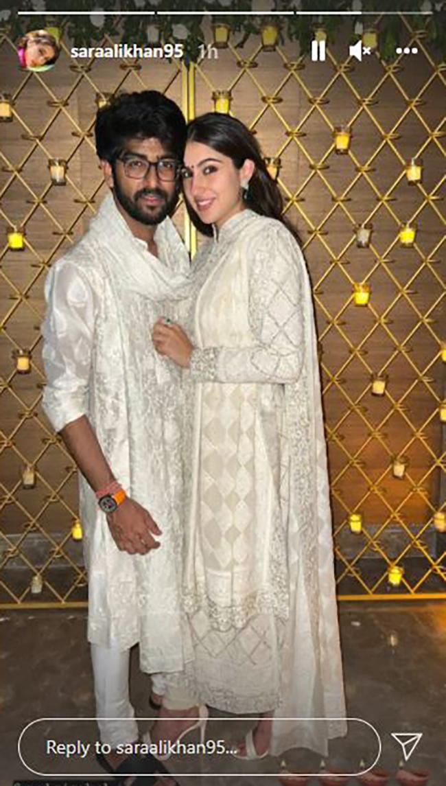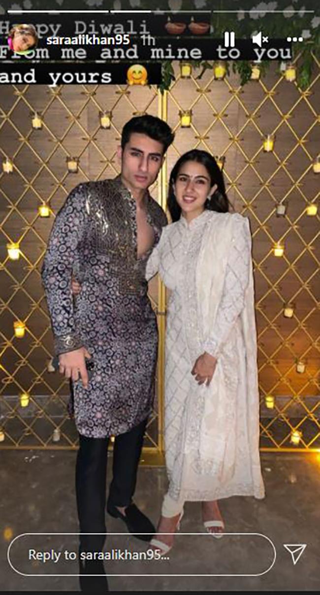 सारा ने अपनी इंस्टा स्टोरी पर दिवाली सेलिब्रेशन की दो फोटोज साझा की हैं. एक फोटो में सारा भाई इब्राहिम संग नजर आ रही हैं. सारा और इब्राहिम दोनों ट्रेडिशनल आउटफिट में कैमरे को पोज देते हुए नजर आ रहे हैं. सारा ने फोटो शेयर करके फैंस को दिवाली की शुभकामनाएं दी थीं.