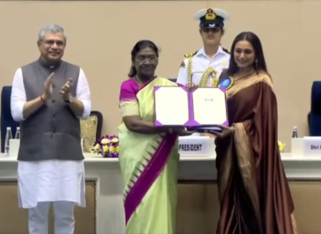 रानी मुखर्जी को बेस्ट एक्ट्रेस के 71वें नेशनल अवॉर्ड से नवाजा गया. राष्ट्रपति द्रौपदी मुर्मु ने उन्हें ये सम्मान दिया. रानी ने 'मिसेज चैटर्जी वर्सेज नॉर्वे' में दमदार भूमिका निभाई थी, जिसके लिए उन्हें ये सम्मान दिया गया.