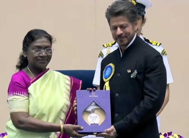 फिल्म जवान के लिए शाहरुख को राष्ट्रपति द्रौपदी मुर्मु ने सम्मानित किया. उनके चेहरे की खुशी देखने लायक थी. शाहरुख को यूं ही नहीं किंग खान कहा जाता. उनके मंच पर आते ही वहां बैठे सभी लोग चियर करते दिखाई दिए.