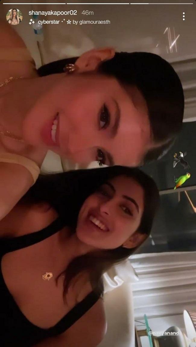 शनिवार रात शनाया कपूर अपनी दोस्त नव्या नवेली नंदा के साथ समय बिता रही थीं. ऐसे में उन्होंने नव्या संग खींची एक खूबसूरत सेल्फी को इंस्टा स्टोरी पर शेयर किया. इस सेल्फी में दोनों स्टार किड्स बेहद ग्लैमरस नजर आ रही हैं. दोनों की मुस्कान किसी का भी दिल जीत सकती है. बता दें कि नव्या और शनाया लम्बे समय से दोस्त हैं.