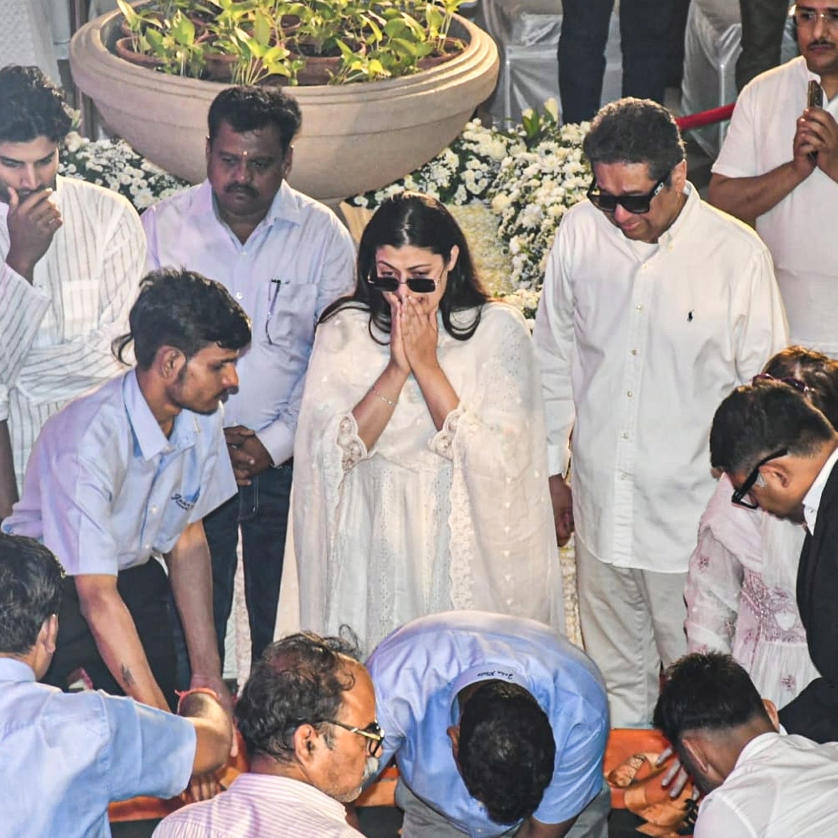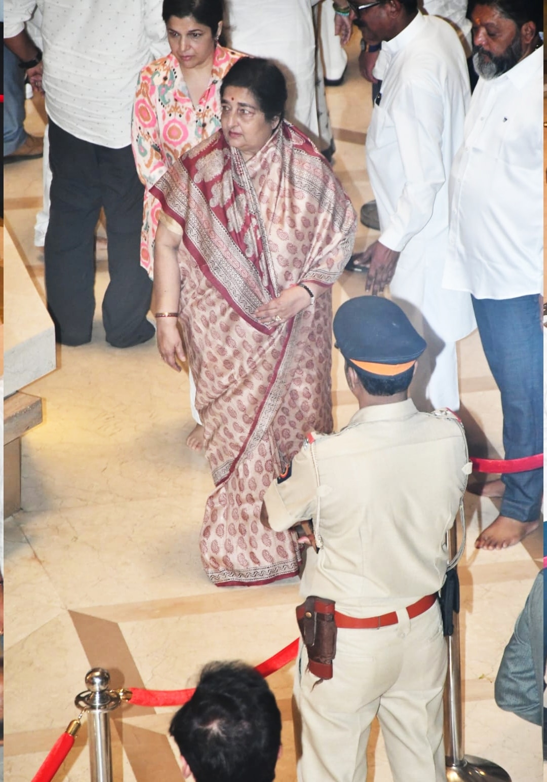 आशा ताई के अंतिम दर्शन करने बहन उषा मंगेशकर भी पहुंचीं. सफेद साड़ी में करीबी का हाथ थामें उषा ने दीदी को नमन किया और नम आंखों से विदा किया.