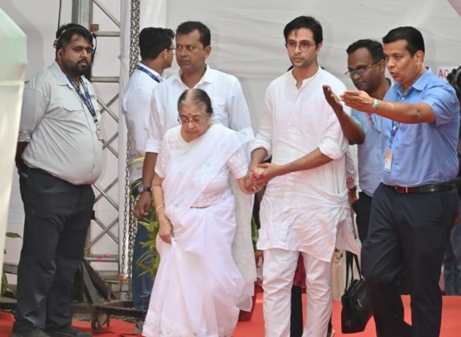 आशा भोसले को अंतिम विदाई देने लगातार सेलेब्स पहुंच रहे हैं. फिल्मी सितारों के अलावा राजनीतिक जगत की हस्तियां भी सिंगर को भावभीनी श्रद्धांजलि दे रहे हैं. उद्धव ठाकरे और उनके बेटे आदित्य ठाकरे ने आशा भोसले के अंतिम दर्शन किए. सिंगर अनुराधा पौडवाल की आंखें आशा ताई को देखकर नम हुईं.