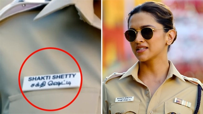 'सिंघम अगेन' में दीपिका पादुकोण की एंट्री को एक बार फिर ध्यान से देखिए. रोहित शेट्टी के कॉप यूनिवर्स की कहानियां अभी तक मुंबई-गोवा के बीच ही रही हैं. लेकिन दीपिका का किरदार शक्ति शेट्टी बेंगलुरु में बेस्ड नजर आ रहा है. 'लेडी सिंघम' शक्ति के रोल में नजर आ रहीं दीपिका की वर्दी पर जो नेम प्लेट है, उसपर इंग्लिश के साथ जिस दूसरी भाषा में उनका नाम लिखा है, वो कन्नड़ है.