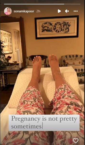 सोनम अपनी प्रेग्नेंसी के थर्ड ट्राइमेस्टर में हैं. एक्ट्रेस इस फेज को यूं तो काफी एंजॉय कर रही हैं. लेकिन जैसे जैसे उनकी डिलीवरी डेट नजदीक आ रही है, एक्ट्रेस की परेशानियां बढ़ती ही जा रही हैं. सोनम ने हाल ही में एक तस्वीर शेयर कर फैंस को हैरत में डाल दिया है. सोनम ने इंस्टाग्राम पर अपने पैरों की फोटो अपडेट की है. स्टोरी अपडेट कर सोनम ने लिखा- 'प्रेग्नेंसी कभी-कभी आसान नहीं होती है.'