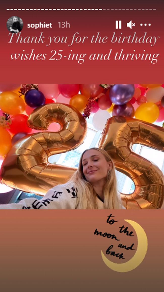 गेम ऑफ थ्रोन्स एक्ट्रेस और प्रियंका चोपड़ा की जेठानी सोफी टर्नर ने 21 फरवरी को अपना 25वां बर्थडे मनाया. उनके जन्मदिन पर दोस्तों और फैंस ने उन्हें ढेर सारी शुभकामनाएं दी. जोनस परिवार ने भी सोफी के बर्थडे को अपने बर्थडे विशेज से खास बनाया. सोफी के हसबेंड जो जोनस समेत प्रियंका चोपड़ा, निक जोनस, केविन जोनस ने इंस्टाग्राम पर सोफी की अनसीन फोटोज शेयर कर उन्हें जन्मदिन की बधाई दी.