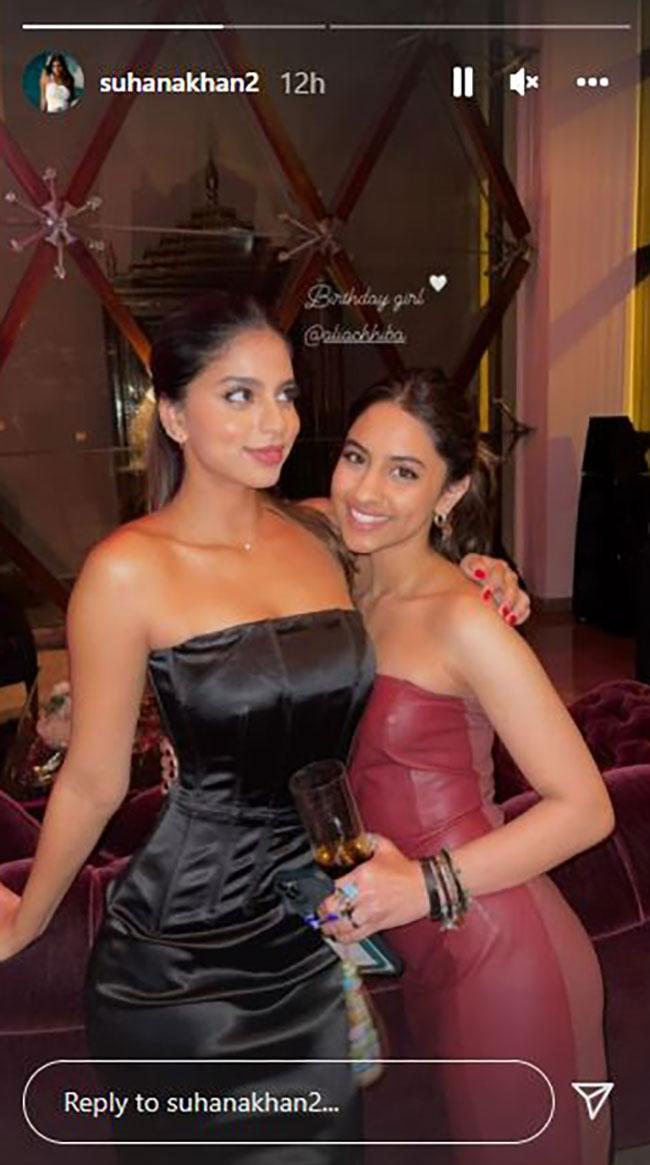 सुहाना ने अपनी इंस्टाग्राम स्टोरी पर कजिन सिस्टर आलिया छिब्बा (Alia Chhiba) के साथ ग्लैमरस फोटोज शेयर करके उन्हें बर्थडे विश किया है. आलिया गौरी खान के भाई विक्रांत छिब्बा की बेटी हैं.