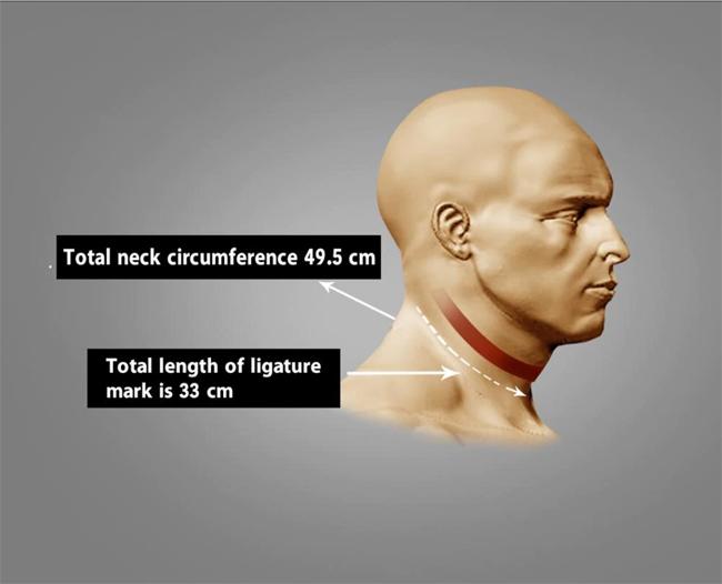 गला घोंटने की स्थिति में, निशान गर्दन के चारों और क्षैतिज आकृति लेता.