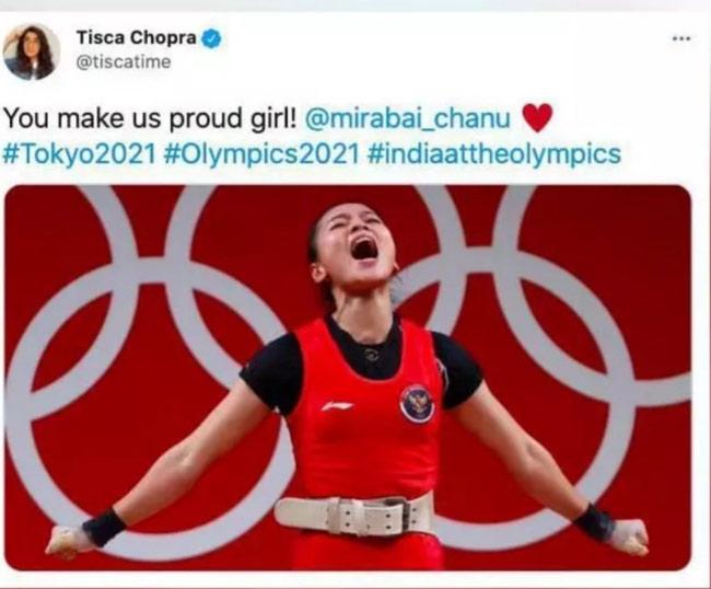 दरअसल, टिस्का चोपड़ा ने मीराबाई चनू की जगह इंडोनेशिया की वेटलिफ्टर Aisah Cantika की फोटो शेयर कर लिख दिया 'तुमने हमें गौरवांवित किया है'. हालांकि टिस्का ने नाम मीराबाई चनू का ही लिखा पर उनकी ये गलती लोगों की नजरों से बच नहीं पाई. टिस्का के इस ट्वीट पर कई लोगों ने उन्हें ट्रोल कर दिया.