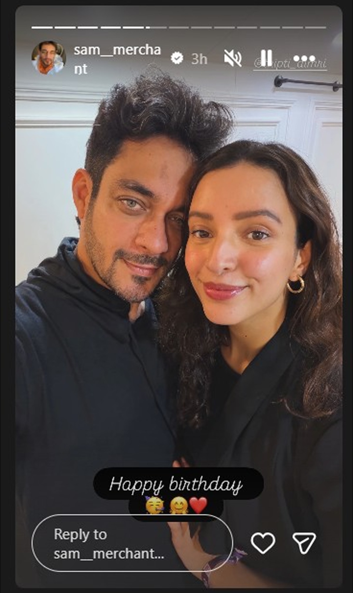 तृप्ति के बर्थडे पर उन्हें फैंस और सेलेब्स से ढेरों बधाइयां मिलीं. मगर सबसे स्पेशल विश उन्हें अपने रूमर्ड बॉयफ्रेंड सैम मर्चेंट से मिली है. सैम ने अपनी इंस्टाग्राम स्टोरी पर तृप्ति संग एक कोजी फोटो शेयर करके उन्हें विश किया है. दोनों ब्लैक आउटफिट में ट्विनिंग कर रहे हैं. उनकी क्लोजनेस उनके रिश्ते को जगजाहिर कर रही है.