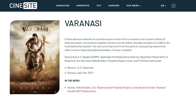 डायरेक्टर एस एस राजामौली की फिल्म 'वाराणसी' को रिलीज होने में फिलहाल एक साल का समय लगने वाला है. मगर फिल्म को लेकर अभी से चर्चा शुरू हो गई है. 'वाराणसी' को एक टाइम-ट्रैवलिंग एडवेंचर बताया जा रहा है, जिसमें महेश बाबू, प्रियंका चोपड़ा और पृथ्वीराज सुकुमारन को जबरदस्त रोल्स निभाते देखा जाएगा. पिछले साल फिल्म का पहला लुक रिलीज किया गया था. हालांकि इसकी कहानी समेत बाकी डिटेल्स को सीक्रेट रखा गया था. लेकिन अब फिल्म पर काम कर रही एक वीएफएक्स कंपनी ने अपनी वेबसाइट पर 'वाराणसी' का सारांश (synopsis) डाल दिया है. इसमें महत्वपूर्ण प्लॉट पॉइंट्स सामने आ गए हैं.