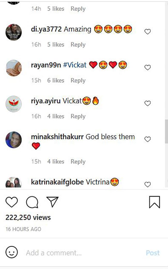 विक्की कौशल और कटरीना को लेकर उनके फैंस भी काफी संजीदा रहते हैं. सोशल मीडिया पर उन्हें लेकर कमेंट करते रहते हैं. एक यूजर ने लिखा है- विक्की एंड कैट हाइड एन सीक खेल रहे हैं. एक यूजर ने दोनों का मिक्स नाम ही लिखा दिया- 'विकैट'.