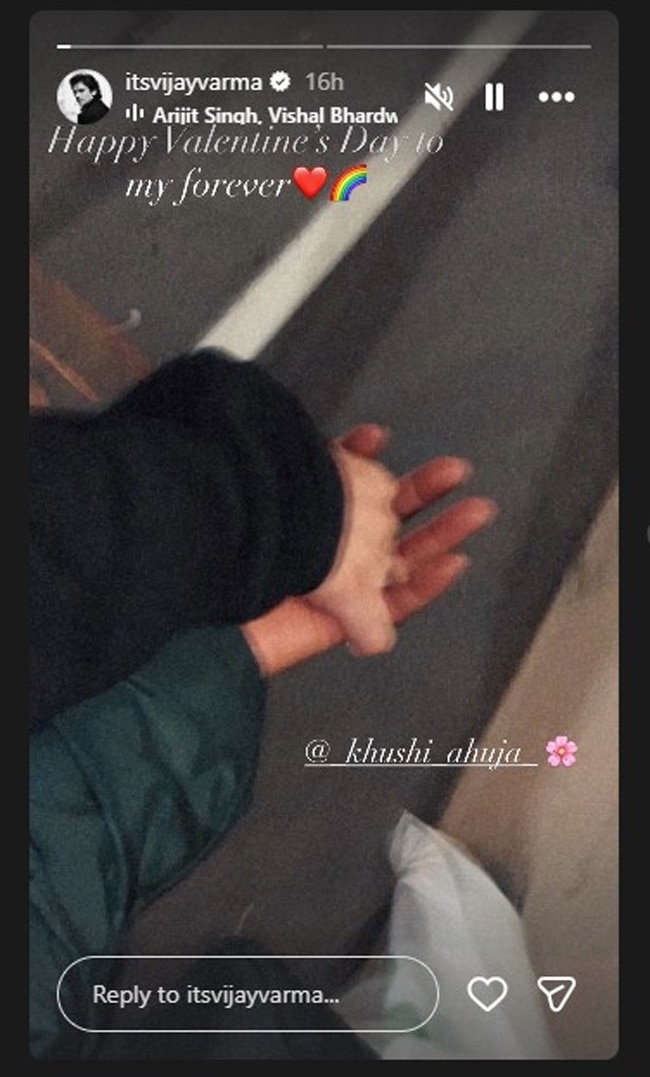 दरअसल, वैलेंटाइन डे के खास मौके पर विजय वर्मा ने अपनी इंस्टाग्राम स्टोरी पर एक तस्वीर शेयर की, जिसमें एक्टर एक लड़की का हाथ थामे हुए दिखाई दिए. पोस्ट के कैप्शन में लिखा है- हैप्पी वैलेंटाइन डे टू माय फोरेवर.