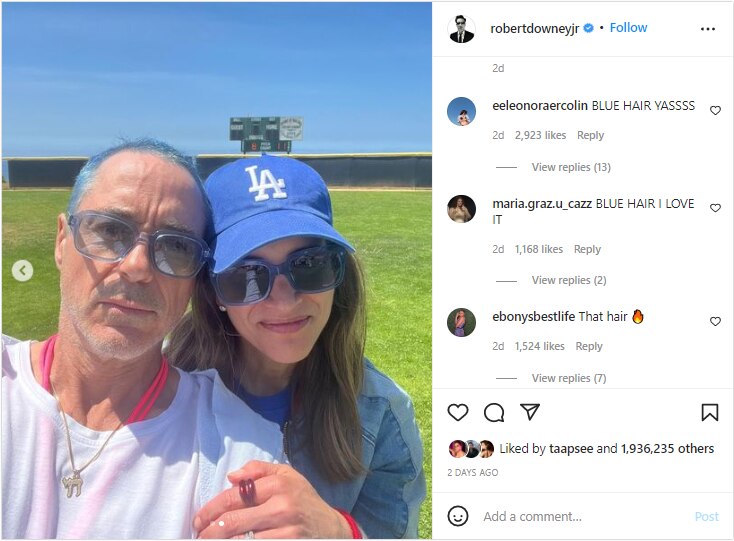 यूं तो ये पोस्ट रॉबर्ट ने अपने बेटे की जीत की खुशी में डाला था, लेकिन फैन्स को जिस बात ने अट्रैक्ट किया वो थे एक्टर के बाल. एक्टर के बालों का नीला रंग देख फैन्स चकरा गए, लेकिन अपने आयरन मैन से प्यार इतना है कि तारीफ करना नहीं भूले. एक यूजर ने कमेंट कर लिखा- 'नीले बाल! ठीक है, फिर भी तुमसे प्यार है. वहीं एक दूसरे यूजर ने लिखा- 'आप हर तरह से अच्छे लगते हो'