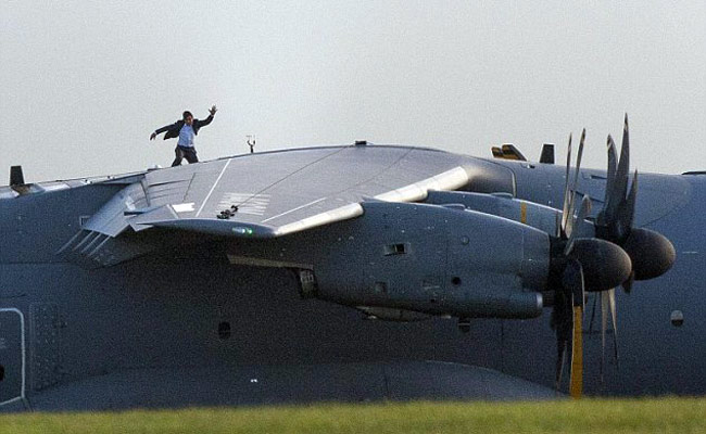 अगले साल रिलीज होने वाली इस फिल्म 'मिशन इंपॉसिबल-5' की शूटिंग ब्रिटेन के ग्रामीण इलाकों में हो रही है. सूत्रों के मुताबिक इस स्टंट के चलते टॉम क्रूज जिस प्लेन से लटके हैं, वह 4 इंजन वाला A400M एयरबस है. इस सीन में टॉम क्रूज सूट पहने प्लेन के दरवाजे पर किनारे से लटके नजर आ रहे हैं और खुद की सेफ्टी के लिए उन्होंने सेफ्टी बेल्ट्स का इस्तेमाल भी किया है.