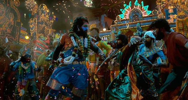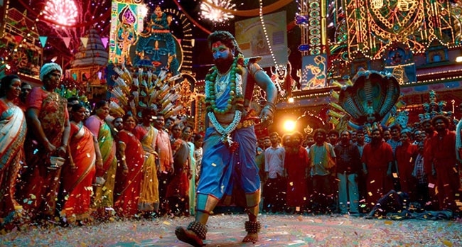 'पुष्पा 2' के टीजर में अल्लू अर्जुन के पूरे शरीर पर गाढ़े नीले रंग का बॉडी पेंट है. उन्होंने विग लगाई है साड़ी पहनी है और लगभग वो सारा ट्रेडिशनल श्रृंगार किया है, जो महिलाएं करती हैं.