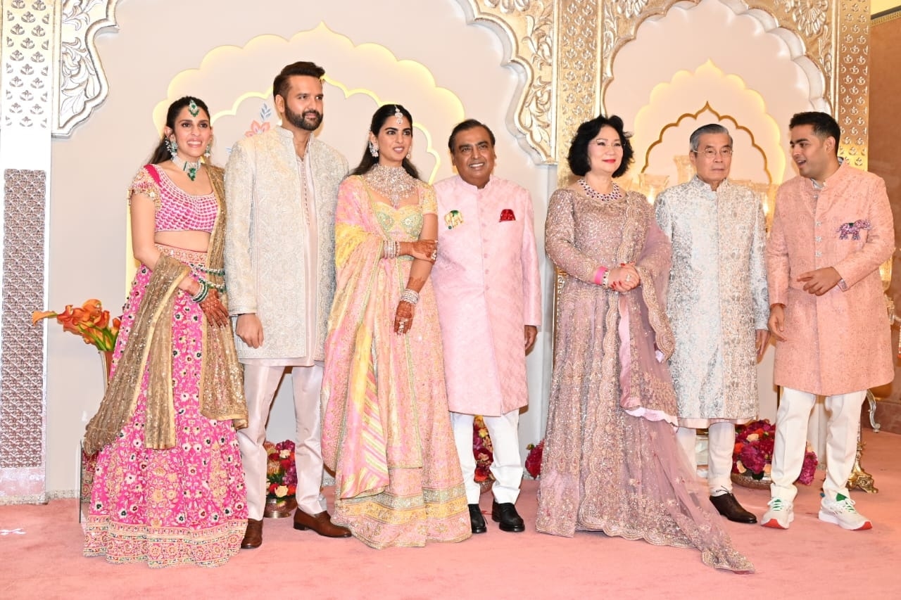 अंबानी परिवार वेडिंग वेन्यू जियो वर्ल्ड सेंटर पहुंचा. मुकेश अंबानी, नीता अंबानी, आकाश, श्लोका मेहता, ईशा अंबानी और आनंद पीरामल की पहली फोटो सामने आई है. पिंक लहंगे में श्लोका खूबसूरत लगीं. सज धजकर तैयार पूरी फैमिली ने दूल्हे अनंत संग पैप्स को पोज दिए. अनंत गोल्डन शेरवानी में हैंडसम लगे. नीता अंबानी ने बेटे की शादी के लिए अबू जानी संदीप खोसला का डिजाइनर Ranghaat घाघरा पहना.