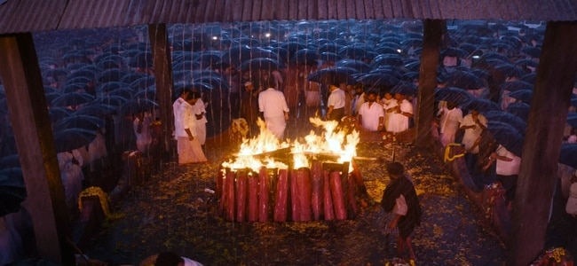 ट्रेलर के एक छोटा सा सीन एक अंतिम संस्कार का है. इस सीन में वैसे तो किसी भी चेहरे को पहचान पाना मुश्किल है. पर अंतिम संस्कार में लाल चंदन की लकड़ियां इस्तेमाल की जा रही हैं. एक बहुत भारी भीड़ यहां बारिश के बावजूद काली छतरियां लिए जुटी हुई है.इस फ्रेम में गैंगस्टर मंगल श्रीनू और उसकी पत्नी की आकृति पहचान में आती है.