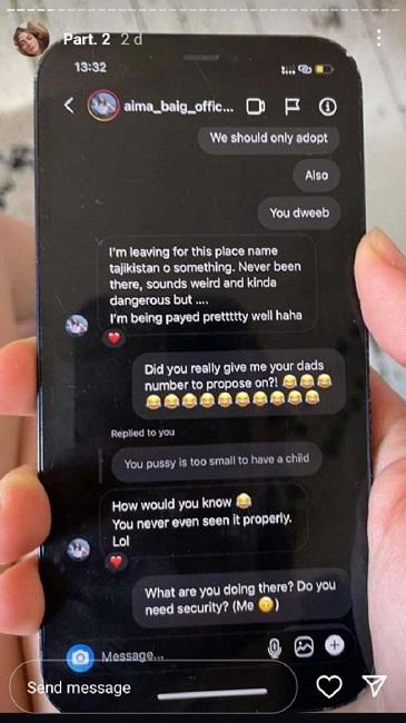 पाकिस्तान फिल्म इंडस्ट्री इन दिनों काफी चहल-पहल देखने को मिल रही है. खबर है कि पाकिस्तान की फेमस सिंगर एमा बेग की लाइफ में एक भूचाल सा गया है. ऐमा की शहबाज शिगरी से सगाई टूट गई है. सगाई तो टूटी लेकिन उन पर चीटिंग करने का आरोप भी लगा दिया गया है. एक ब्रिटिश मॉडल ने इंस्टाग्राम चैट का स्क्रीन शॉट कर बताया कि ऐमा ने शहबाज को धोखा दिया है.