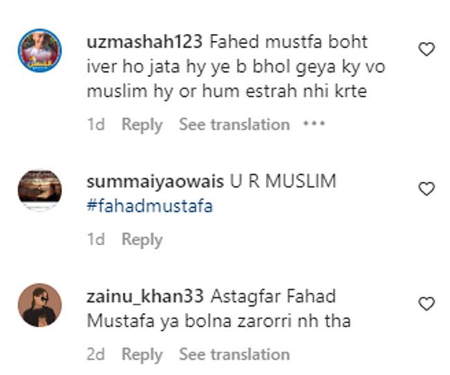 एक अन्य यूजर ने भड़कते हुए लिखा- फहाद मुस्तफा ये भी भूल गया कि हम मुस्लिम हैं और ऐसा नहीं कर सकते हैं. एक दूसरे यूजर ने पूछा- क्या तुम मुस्लिम हो फहाद मुस्तफा?