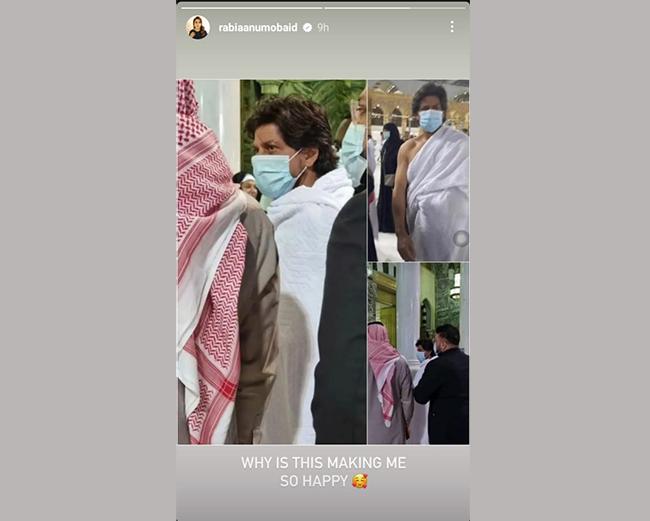 राबिया अनम ने मक्का से शाहरुख खान की तीन तस्वीरों का कोलाज अपनी इंस्टाग्राम स्टोरी पर शेयर किया. इसके साथ उन्होंने कैप्शन में लिखा- ये देखकर मुझे इतनी खुशी क्यों हो रही है? सिर्फ पाकिस्तानी सेलेब्स ही नहीं, बल्कि वहां की आवाम भी किंग खान की मुरीद हो गई है.
