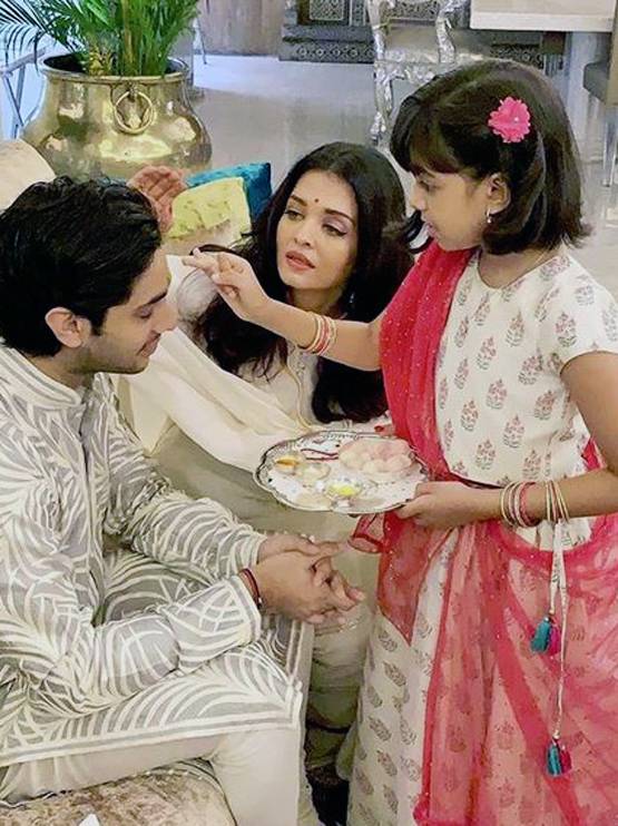 भाई अगस्त्या के हाथ में राखी बांधते हुए आराध्या की तस्वीर सोशल मीडिया पर वायरल है. ऐश्वर्या बेटी की राखी को बांधने में मदद कर रही हैं.